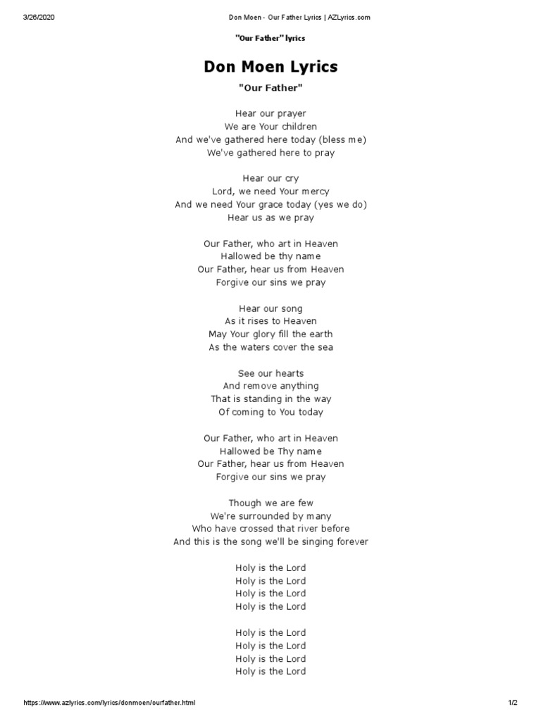 Don Moen Our Father Lord S Prayer Christian Worship And Liturgy
